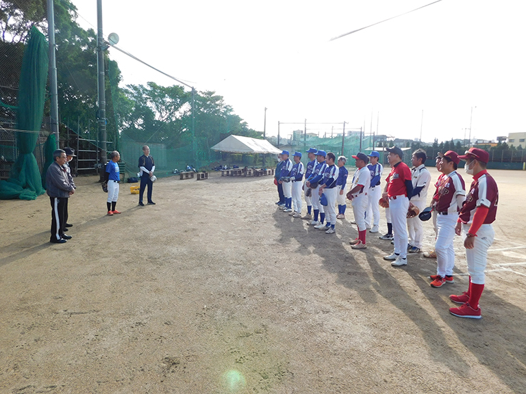 試合は紅組(44期卒中心)白組(19期~55期混成)チームにての対戦となり、結果は延長戦になり7-6で紅組の勝利で終了しました。終了後は19期~55期による交流が行われて、今後もさらなる発展を祈願して解散しました。