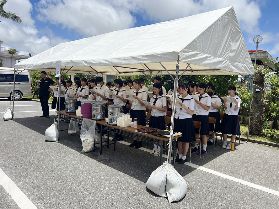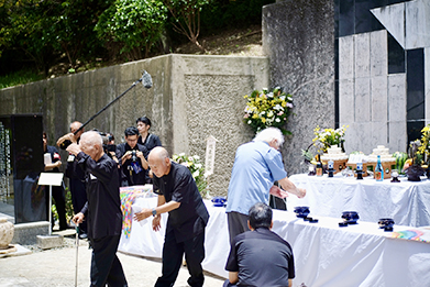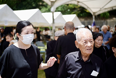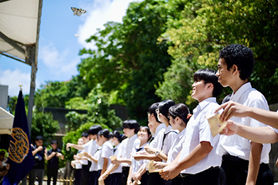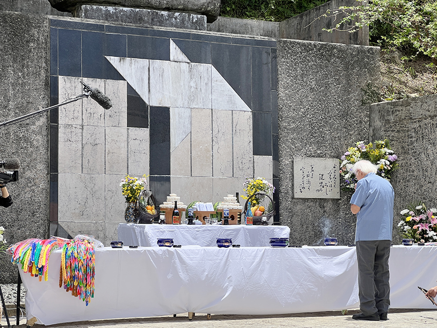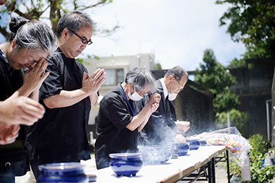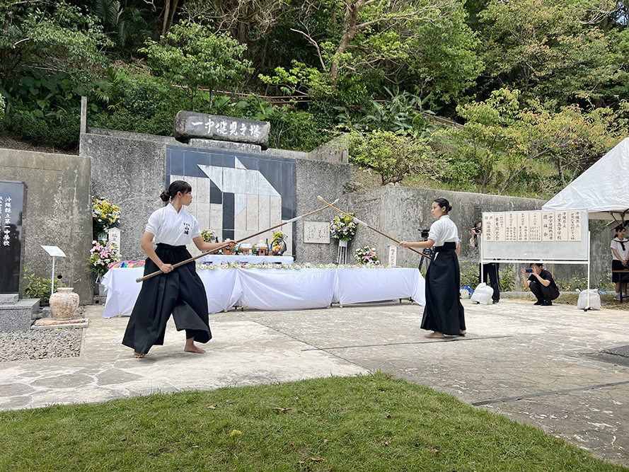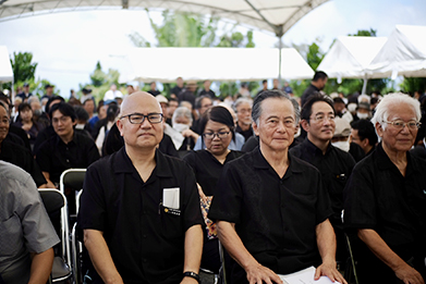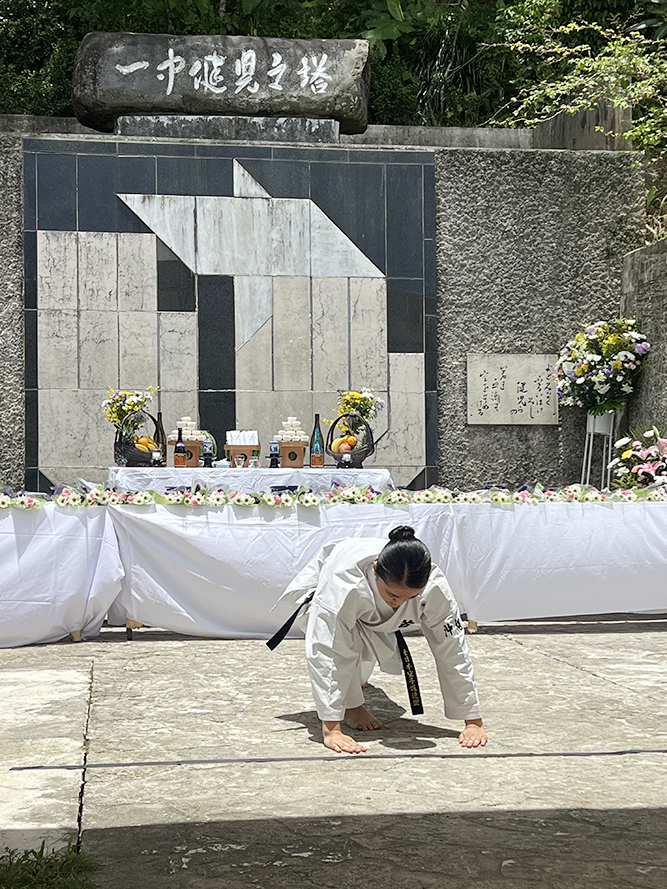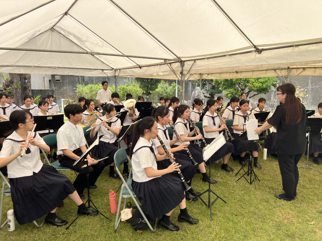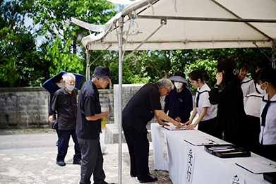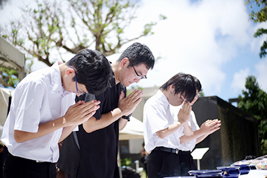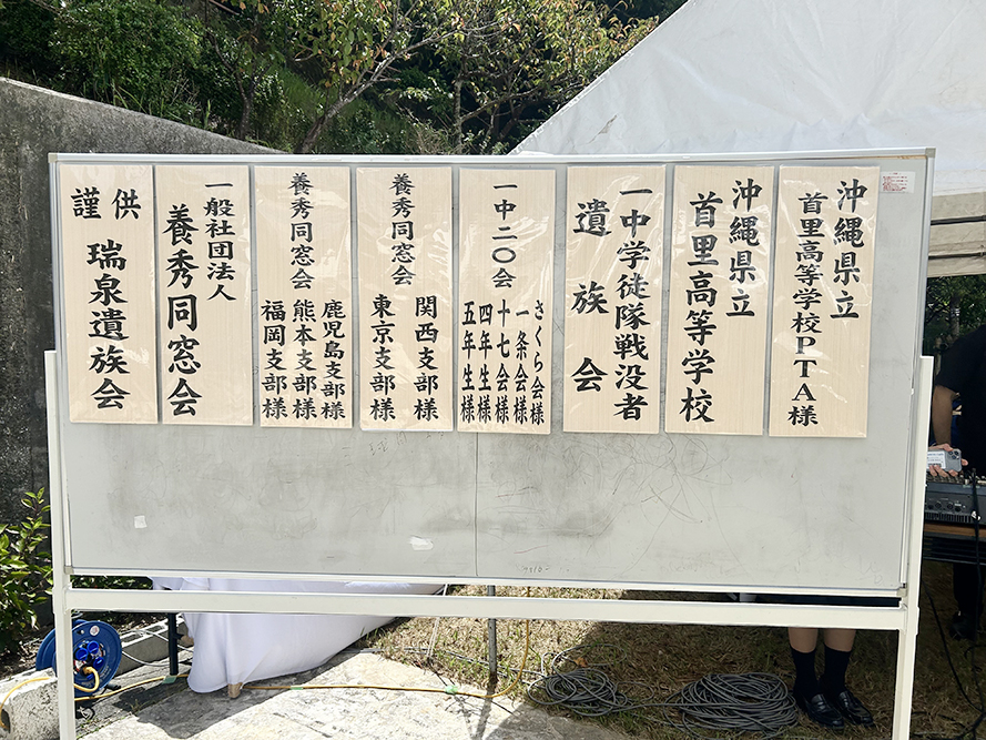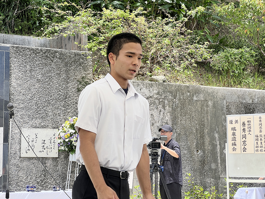 遺族や一中生、同窓生、首里高校職員・生徒・PTAなど約730名が参列し、正午の時報にあわせて黙とうをささげ平和の誓いをあらたにしました。