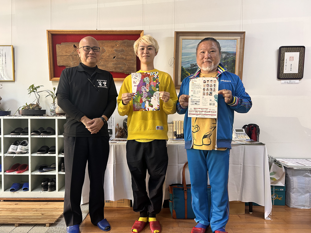 1月14日に劇団「Theater TEN Company(シアターテンカンパニー)」で活動されている代表の田原さん(41期)、玉那覇さん(69期)と田原さんと同期の校長先生もいっしょに来館されました。