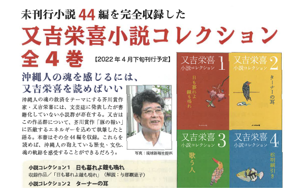 【「又吉栄喜小説コレクション 全4巻」刊行!!】 同窓会員で、芥川賞作家の又吉栄喜さん(首里高21期)が、このほど作品集を刊行されます。1975年のデビュー以来、約50...