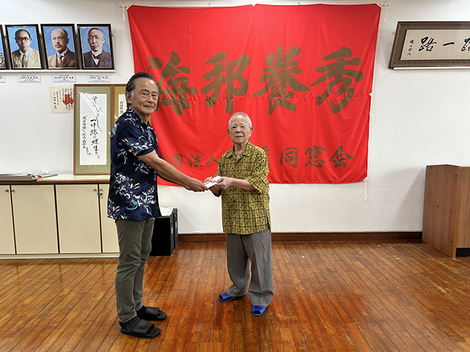 【一中58期 宮城政三郎様よりご寄付】 10月24日 一中58期 宮城政三郎様よりカジマヤー(97歳)記念としてご寄付をいただきました。いただいた寄付金は奨学金に活用させて... -